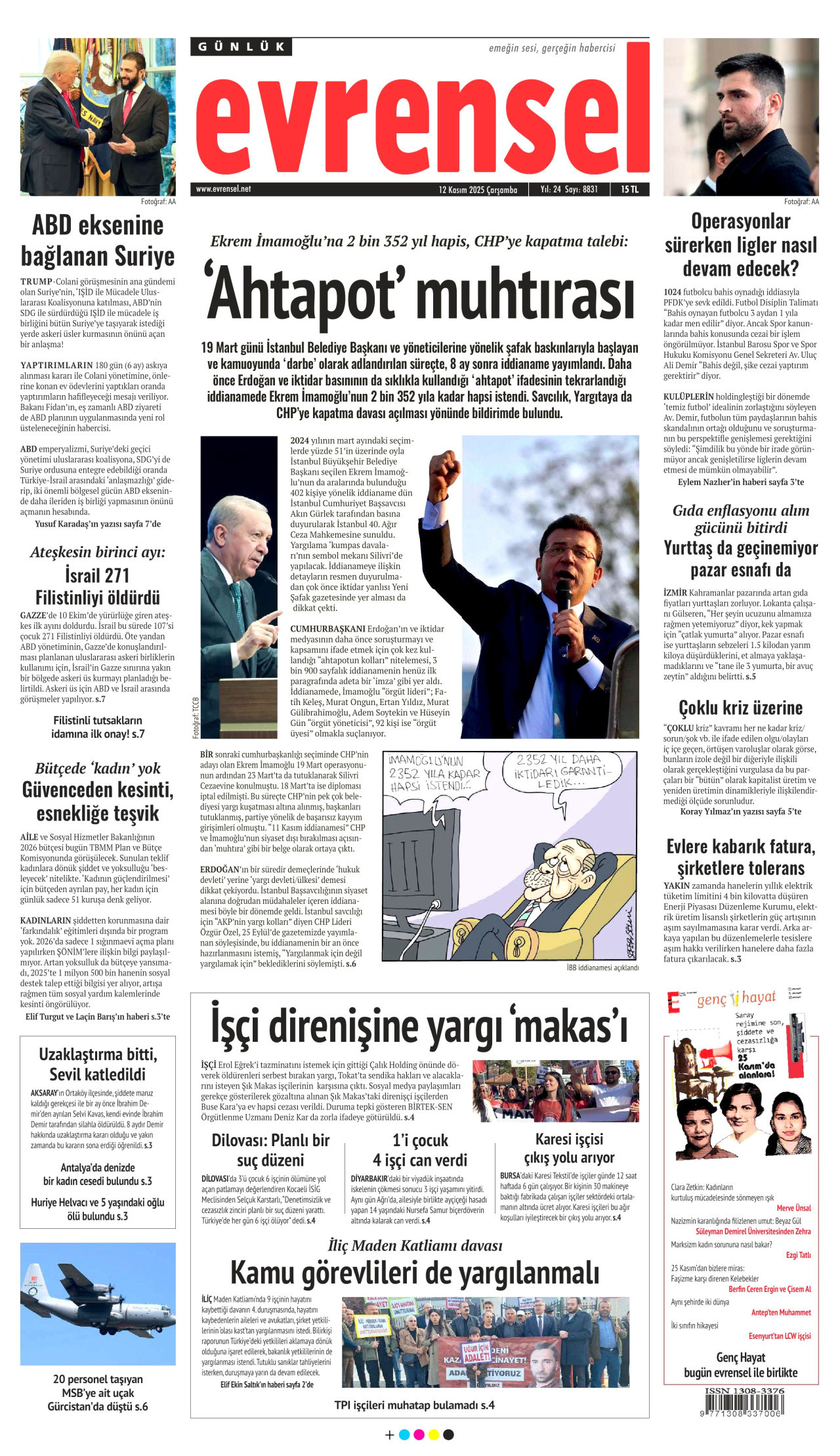 EVRENSEL Gazetesi 12 Kasım 2025, Çarşamba Günü Manşeti